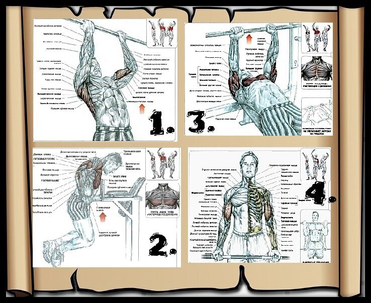 - Снова подтягивания, и так далее. Всего 3-4 подхода на каждую мышцу.