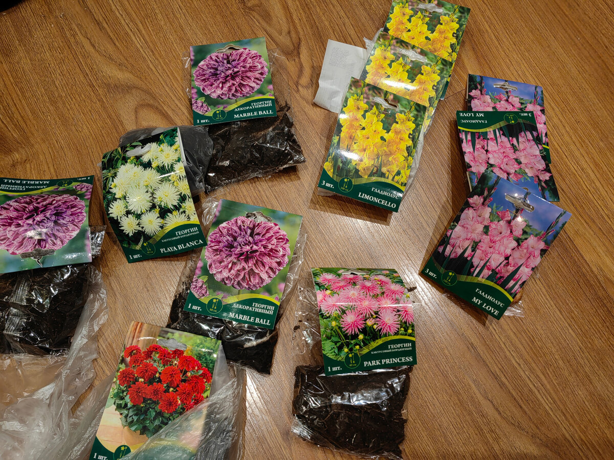 В Фикс-прайсе цены вроде и низкие, но когда начинаешь покупать несколько позиций, то оказывается, что не так уж и дешево в этом магазине. Взять, к примеру, растения. Многие дачники покупают там клубни цветов, саженцы роз и кустарников, плодовые деревья. Даже пересортица не пугает! В магазине продаются саженцы растений от компании "Поиск", вполне проверенная компания, поэтому народ и берет растения. Я вот нынче сошла с ума. Смотрю, георгины появились. Надо взять,захватила и маме заодно. Потом гладиолусы нашла-тоже прихватила. Первый раз купила на 1459 рублей. Потом докупила в другом магазине еще рублей на 500. А в третьем магазине появились ирисы, бегония и еще какие-то растения, не удержалась. Купила, да заодно еще семена цветов взяла. Ирисы многолетние, выживут. А вот по-поводу остальных буду экспериментировать, посажу в горшок ацидантеру-она как гладиолус, нужно выкапывать. Гладиолоусы и георгины я все равно выкапываю каждый год, одним проблемным цветком больше или меньше-разницы не