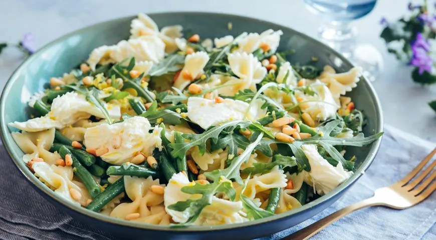 Для приготовления салата “Примавера” с моцареллой и зеленой фасолью вам понадобятся:
