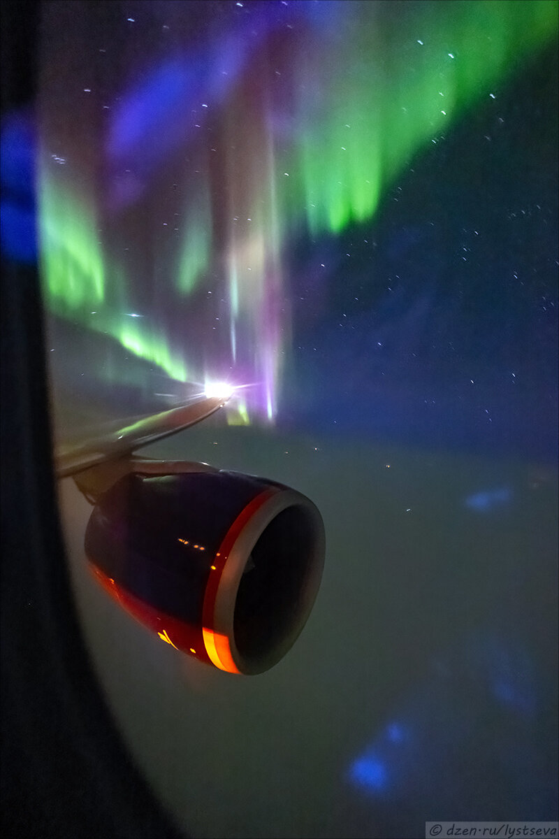 Как выглядит северное сияние с борта самолёта