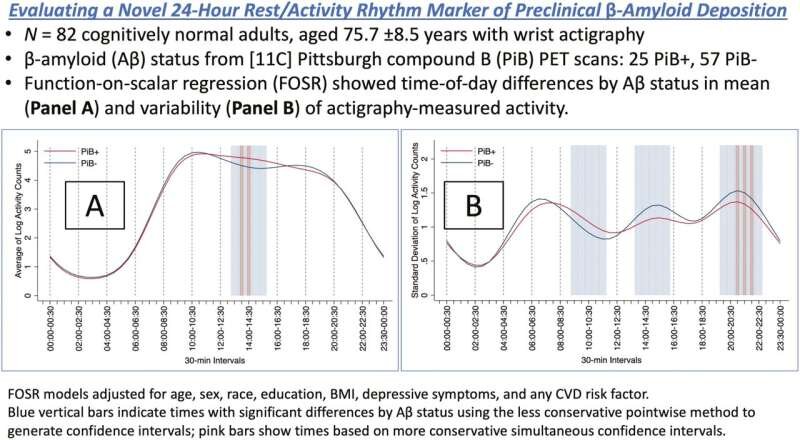 Adam P Spira et al, Evaluating a novel 24-hour rest/activity rhythm marker of preclinical β-amyloid deposition, SLEEP (2024). DOI: 10.1093/sleep/zsae037