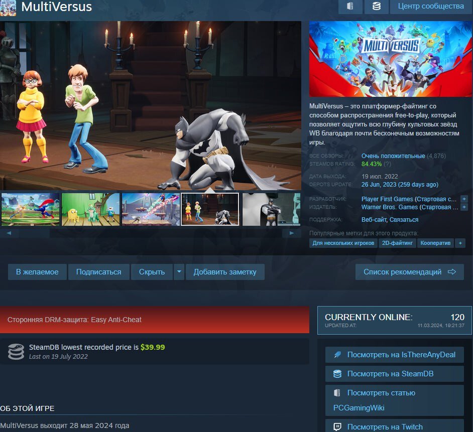 Это бесплатный платформер-файтинг WB Games с героями компании.