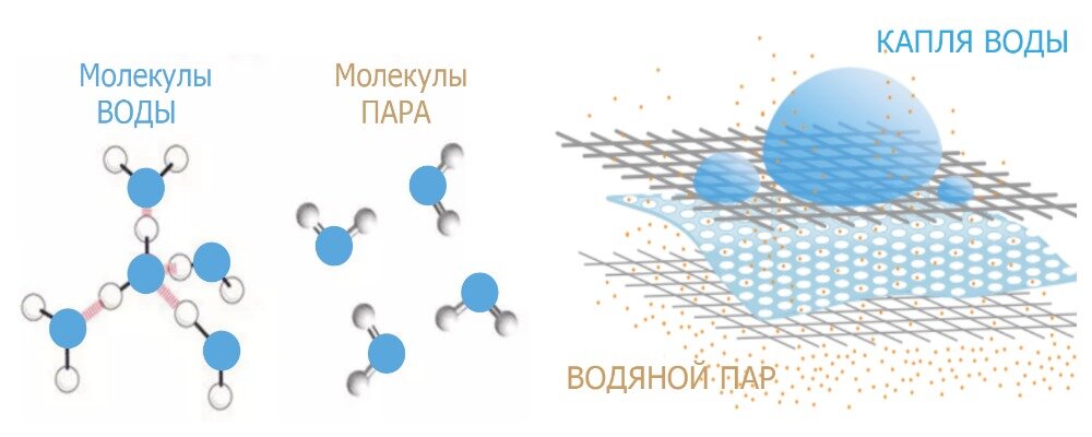 У пара расстояние между молекулами воды настолько большое, что каждая из них выступает как отдельная единица и свободно выходит наружу через пору.