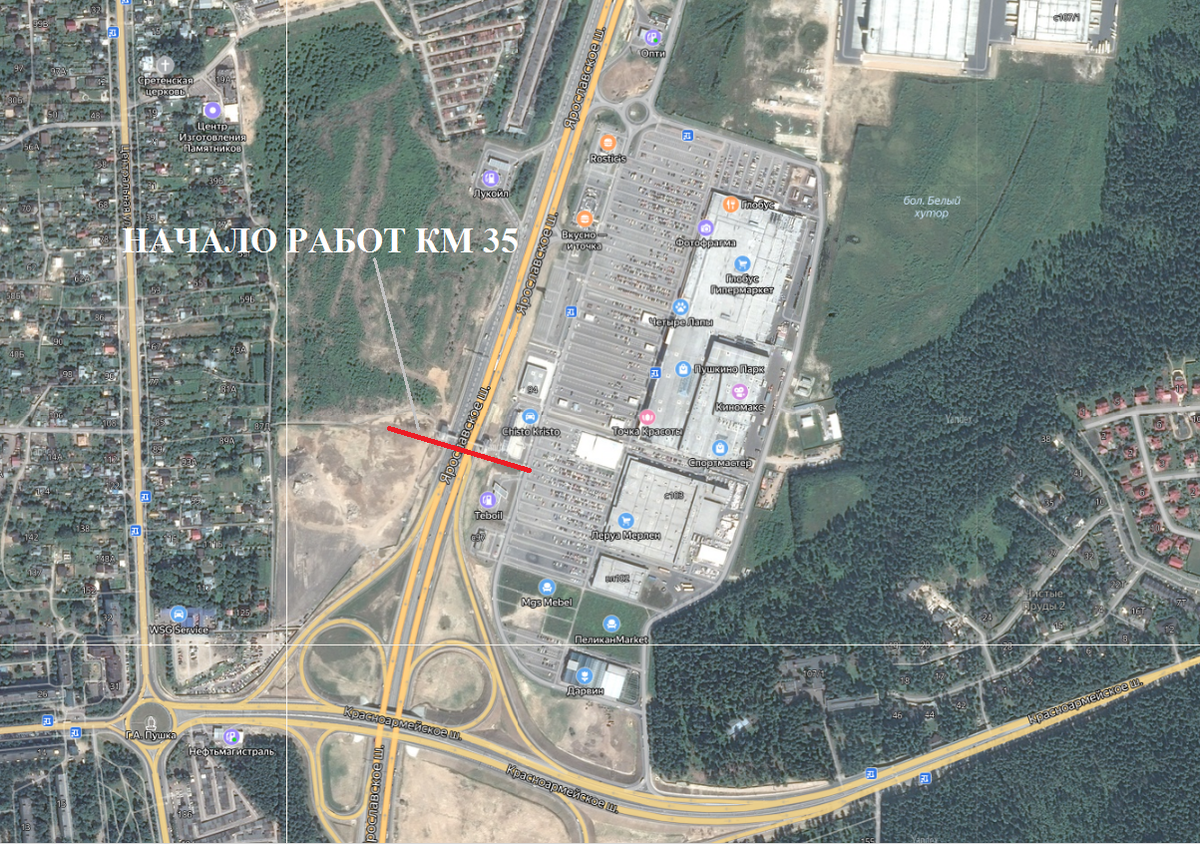 Начавшаяся реконструкция будет разбита на 2 этапа. Первый из них - 5 километровый участок от пересечения с Красноармейским шоссе и ТРЦ "Пушкино парк" до 40 км (примерный ориентир - АЗС "Гаспромнефть")