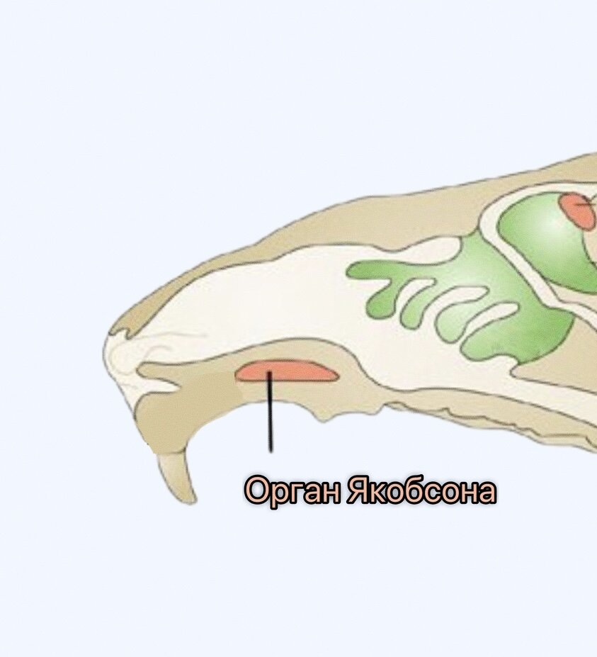 Вторым носом псовых называют вомероназальный орган (орган Якобсона), который находится во рту собаки, за верхними резцами. Этот маленький, но мощный орган является сгустком сенсоров, отвечает за распознавание феромонов, молекул, которые человек идентифицировать не может. Он позволяет собаке точно распознавать возраст и пол других живых существ. Кроме того, он отвечает за половое и материнское поведение собаки.