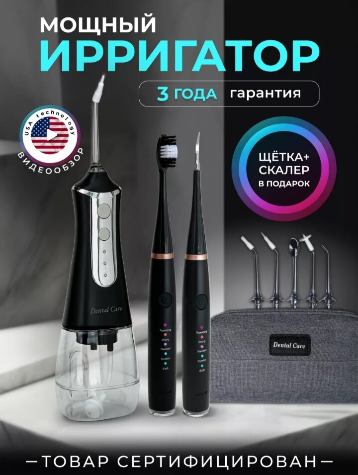 Представляем портативный зубной ирригатор - профессиональное стоматологическое устройство для чистки зубов, которое станет вашим незаменимым помощником в уходе за здоровьем полости рта. Аппарат оснащен мощной системой высокочастотных и пульсаций и пульсирующих струй воды, которые обеспечат глубокую и тщательную очистку зубного налета, бактерий и остатков пищи. Даже самые труднодоступные места станут достижимыми благодаря вращению насадок на 360 градусов. Что позволяет значительно снизить риск развития кариеса, зубного камня, воспалительных процессов и заболеваний десен, избавиться от неприятного запаха изо рта. В семейном комплекте представлено пять сменных ортодонтических и пародонтических насадок, в том числе для чистке брекетов и имплантов, массажа и укрепление десен. Встроенный резервуар для воды объемом 300 мл позволит провести полную процедуру чистки без необходимости постоянного дополива. Аккумулятор обеспечит до 4 часов беспрерывной работы, что идеально для использования в пут