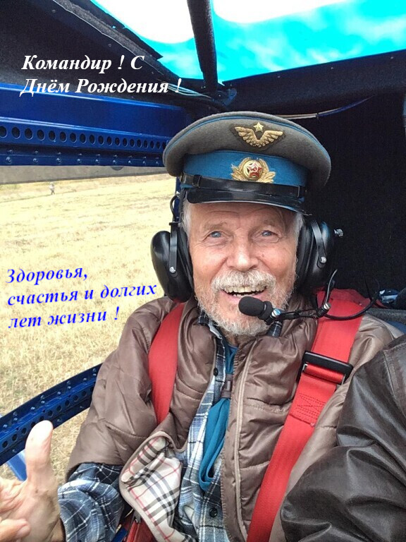 "Командир, поздравляю с днём рождения!!! 77 лет - символическая дата. Желаю здоровья, и оставаться таким, какой Вы сейчас, в плане показа мужества своим подчинённым. Желаю также встать на ноги, и чтобы мы ещё полетали вместе..."