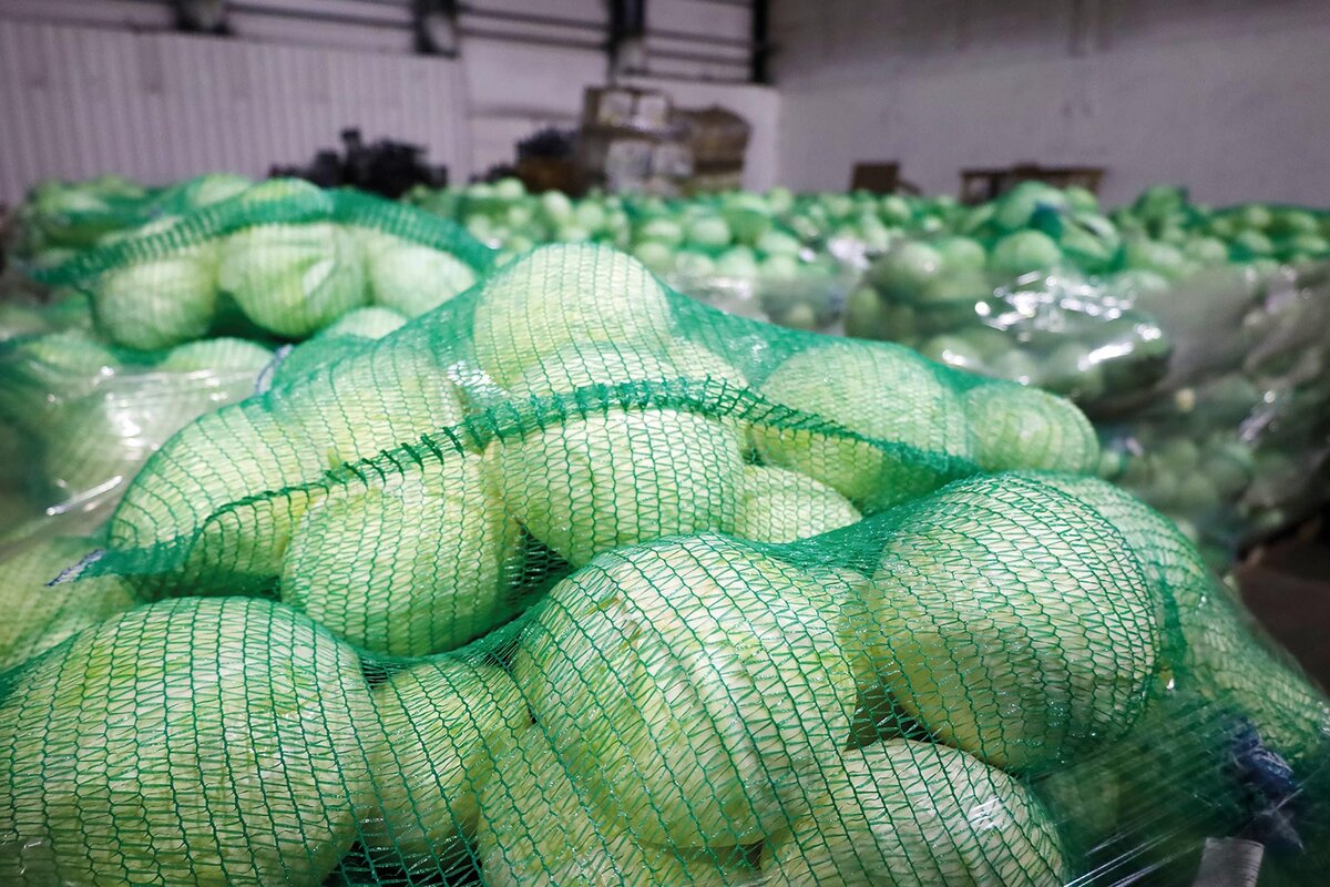– Женщины на первом инспекционном столе делают первичный отбор, убирают явную некондицию. После в специальной установке с кочанов воздухом сдуваются верхние листья. На втором инспекционном столе работницы ножом подрубают кочерыжку и убирают оставшиеся плохие листья. В завершении капуста на весах пакуется по сеткам. За смену здесь подготавливают до 40 тонн овоща сетевого качества, то есть первого сорта. Могут подготовить по заявке к отгрузке и второй сорт – это корнеплоды с трещинами или некалибр, – рассказывает Алексей Комков, технический директор производства.