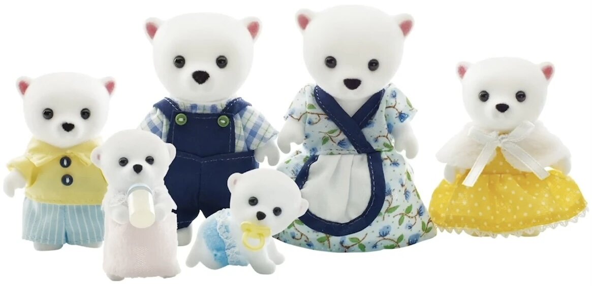 В Сильвании есть целых три семьи полярных медведей. Взглянем на самую первую, которая вышла в 2011 году. Фамилия семьи - Бофорт. Она явно отсылает нас к морю Бофорта - окраинному морю Северного Ледовитого океана, которое омывает берега Канады и Аляски, и на побережье которого живут белые медведи. Само море названо в честь британского адмирала, гидрографа и картографа Фрэнсиса Бофорта. В английских выпусках Сильвании раньше любили давать фамилии с отсылкой к известным британцам или значимым для Англии событиям. Пожалуй, если сравнить все три семьи медведей, то первое место за натурализм получат именно Бофорты. Ах, эти треугольные головы! У настоящих медведей именно такие. Семья выходила только в Англии, поэтому считается довольно редкой. Отдельным набором выходили малыши - ползущий и лежащий. Также вышло два сундучка - с сидящим малышом и ползущим. Сундучок с сидящим малышом даже добрался до России. Второй сундучок остался редким английским эксклюзивом. В Англии также выпустили е