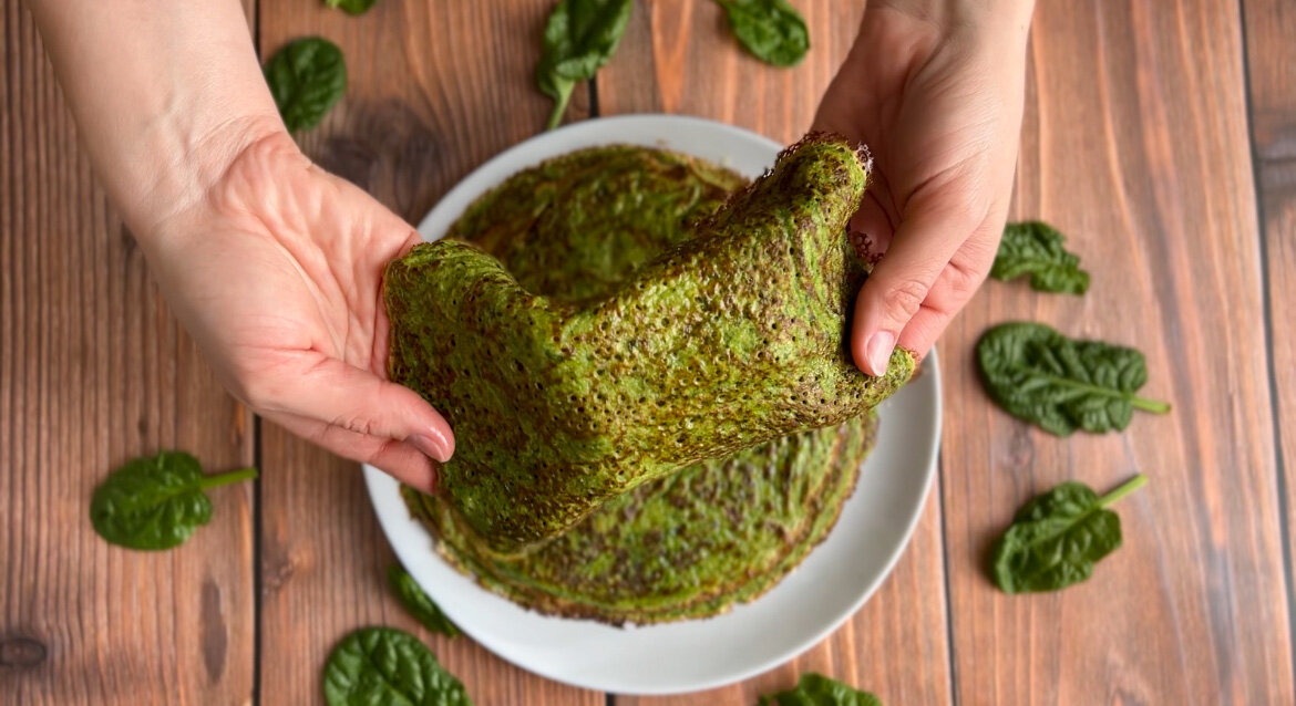 Просто добавила в тесто для блинов шпинат и получились "изумрудные" блинчики. Удивляю гостей на Масленицу!