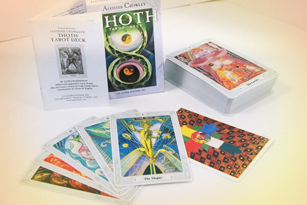 Или, по имени ее создателя - колода Кроули. Колода Кроули относится к разряду достаточно новых колод, поскольку была создана в середине XX века. Она наполнена множеством эзотерических символов, в основном из египетской и кельтской мифологий. Оригинально и ее цветовое исполнение, поскольку ее краски отличаются от тех, которые использовались ранее. Ее создатель, Алистер Кроули, изначально не собирался создавать принципиально новую колоду. Несмотря на то, что, когда он начал интересоваться и изучать Таро, ни одна из колод его полностью не удовлетворяла, изначально он планировал ограничиться только доработкой какой-либо из уже существующих колод Таро. Кроме того, его не устраивал налет таинственности - по мнению Кроули, толкование карт должно быть более доступно и понятно. Однако в 1937 году он знакомится с Фридой Харрис, также увлекающейся эзотерикой, которая берется нарисовать принципиально новую колоду "с нуля" в обмен за занятия с ней эзотерикой и магией. В результате, работа над нов