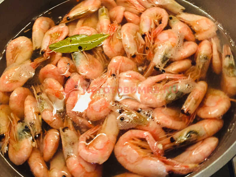 Замороженные креветки нужно предварительно разморозить, поместив их в дуршлаг под холодную воду.