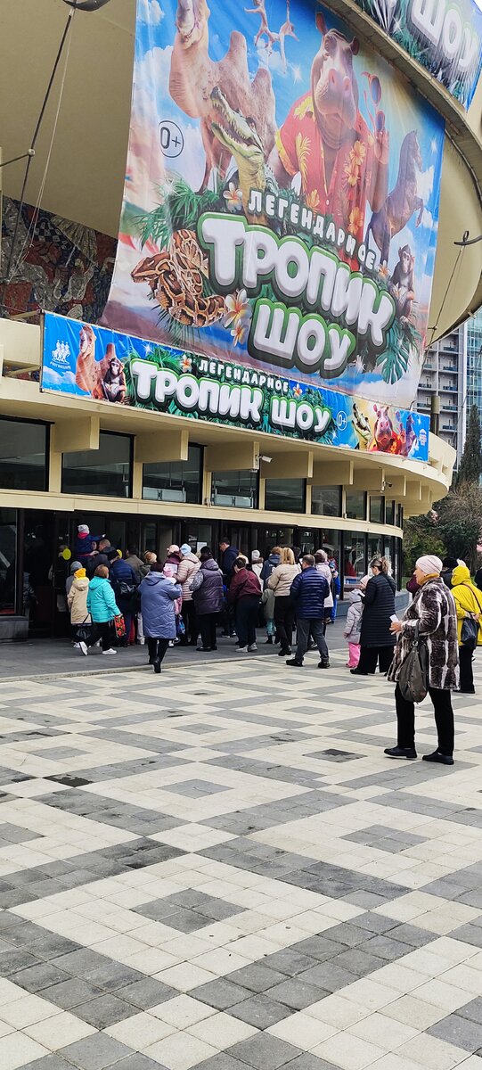 Ну, как вы помните, билет в цирк мне достался как подарок на восьмое марта. Цирк я не люблю, прямо с детских лет. Не вдохновляет меня там ничего, вообще. Но в прошлом году пошла на Запашного, проверить, может что нибудь внутри изменилось с того самого детства. Нет, ничего. Запашный конечно огонь, но его в программе было всего ничего, двадцать минут. Еще понравилась пара номеров. Все. Поэтому я лишний раз удостоверилась в том, что цирк, это вот вообще не мое. Ну а в этом году оказалось, что можно взять бесплатный билет, если придешь к кассе цирка города Сочи. Пришла, билет дали. Ну а халяву в нашей стране очень любят и я не исключение. Рассказывать буду по мере поступления эмоций. Потому что на любом спектакле и представлении люблю, чтобы загривок вставал, как у собаки, или чтобы дух захватывало. В театре пока всегда так. Либо плачу, либо трепещу. Посмотрим, смогут ли циркачи меня достать. Поехали. Как помню. Ну и начинал всю программу видимо танцевальный коллектив, кордебалет может.