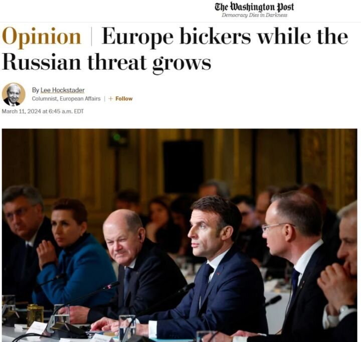В ответ Макрон заявил, что его партнеры по НАТО должны быть готовы направить своих солдат на Украину, коль скоро поставки вооружения от США замедлились, а европейские арсеналы почти пусты.