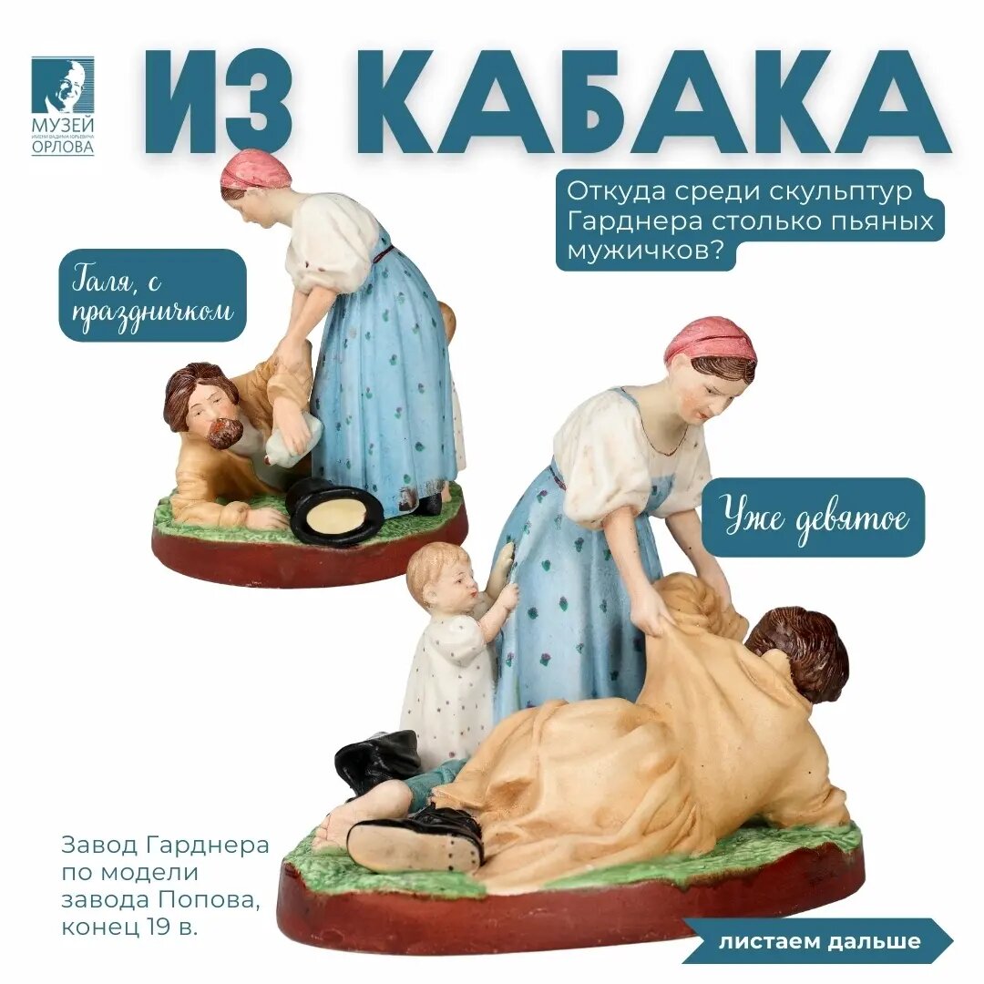 Почему у Гарднера так много сюжетов с «пьяными мужичками»? Кто «тайный кардинал» простонародной темы в русском фарфоре 19 века? Разбираемся в хитросплетениях фарфоровых историй. #музейорлова #русский фарфор А вы знаете, что эта фигурка есть и в летнем, и в зимнем варианте? И вот такая есть Оказывается, корни этой истории уходят на завод Попова! Это там появились впервые такие типажи. После закрытия завода Попова его формы путешествовали по заводам, оставив значительный след в фарфоре Иконникова и Гарднера, в фаянсе Кузнецова. Пожалуйста, вот поповский фарфор, а вот кузнецовский фаянсовый лубок. Так что роль Алексея Гавриловича Попова и его производства была очень и очень значимой в 19 веке.