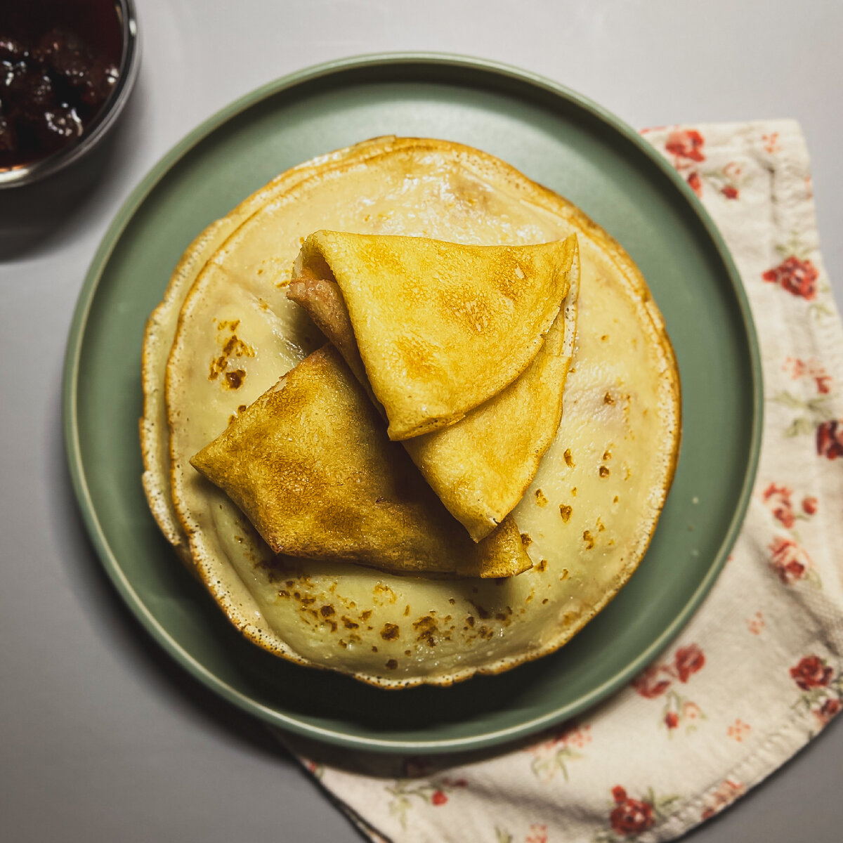 Бонжорно, котики! Блины. Как же много связано с ними! В детстве я просила маму дать мне самый масленный блин, чтобы аж стекало по рукам. И когда мне впервые блины готовил муж он был в шоке от количества масла, которое я затребовала, а я была в еще большем шоке - как он вообще жил до этого не смазывая блинчики? Еще и тесто без яиц готовил, ненормальный!) Сейчас блины по воскресеньям - это наша семейная традиция. Каждый раз это что то классическое, но без конкретных пропорций) Блины уже доведены до идеала, и поэтому я решила запечатлеть один из рецептов. И скорее всего вы не узнайте в этом рецепте ничего нового, но быть может внесете новую традицию в свой дом) Для идеальной огромной стопки блинов нам понадобятся: Приступаем! В глубокой посуде смешиваем яйца с сахаром, соль по вкусу. Хорошенько блендерим пока сахар не растворится. Вливаем кефир и воду (горячая кипяченая вода 80-90°). Хорошенько перемешали. Далее всыпаем муку, высыпали половину - перемешали, затем вторую половину. В гото