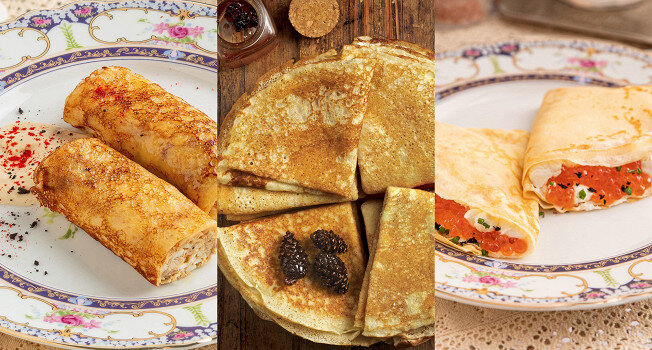 ЛУЧШИЕ БЛИНЫ ИЗ МОСКОВСКИХ РЕСТОРАНОВ АВТОР ЛЮДМИЛА САЛЬНИКОВА ФОТОГРАФ ФОТО ПРЕДОСТАВЛЕНЫ РЕСТОРАНАМИ По степени вовлеченности широких слоев населения традиция выпекания блинов на Масленицу уступает разве что украшению новогодней елки. Тут никому не отвертеться, а шеф-поварам — тем более. В канун той самой недели блины захватывают целые страницы ресторанных меню, и, чтобы выделиться на фоне, каждый шеф старается испечь что-нибудь повкуснее и поизощреннее. Мы изучили предложения, перепробовали пару десятков блинов и наконец выбрали те рецепты, что особенно пришлись нам по вкусу, но при этом они годятся для copy paste силами домашних кулинаров. Тут и вариация на тему блинной лазаньи, и классические блины с икрой и сливочным кремом, и исконно русские, красные блины на кислом тесте, которые вкусно есть и с начинкой, и просто так, с вареньем и чаем. Блинная лазанья Смесь итальянского с нижегородским: в хрестоматийном варианте лазанья прослаивается тонкими пластами пресной пасты, но с блина