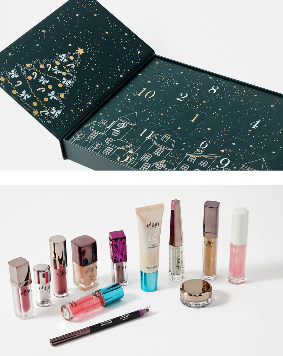 Все календари можно купить в приложении или на сайте Золотого Яблока. ELIAN RUSSIA 12 days Цена: 7 425 руб. Состав: 1. тинт-блеск для губ one touch tinted gloss, 02 pink ice 2. жидкие румяна one touch liquid blush, 05 flawless 3. bb-лак для ногтей bb nail polish 4. масло для губ elixir lip oil, 01 lagoon 5. карандаш для глаз автоматический everlasting kohl eyeliner, 05 shook 6. помада жидкая матовая superior matte liquid lipstick, 516 garnet bracelet 7. кремовый хайлайтер glow explosion, 04 vacation glow 8. сияющая подводка multichrome eyeliner, star line 9. сияющие жидкие тени liquid eye paint, 80 inspire 10. сияющий блеск для губ extreme shine lip gloss, 104 siberian gold 11. рассыпчатые тени для век eyeconic loose pigment, 31 diamond 12. глиттер-гель multichrome glitter gel, liquid stars. MAKEUP REVOLUTION 24 days of glam advent calendar Цена: 6 605 руб. Состав: ARAVIA ORGANIC волшебное преображение Цена: 6 503 руб. Состав: