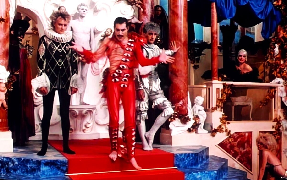 Смысл сценических костюмов Вы найдёте уже в начале сериала. В каждой из частей были разобраны важные сцены с приведением кадров из клипа. Специально были созданы гифы с замедлением и осветлением отрывков видео. Всё было сделано для того, чтобы от Ваших глаз не ускользнуло то, что хотел показать великий Меркьюри. Возможно, Вы увидели эти фрагменты как-то иначе. Поделитесь со всеми в комментариях своими мыслями. Проведена большая работа, детально продумана каждая мелочь. Хотя разве можно называть мелочами то, над чем много трудился талантливейший человек? А человеческий глаз не способен уловить за доли секунды быстро сменяющиеся картинки. И тем более воспринять такое количество совершенно разной информации. А объяснить смысл всего этого многообразия ещё тем более сложно! Для клипа создавались дорогущие декорации. Яркие цвета, сложные костюмы, множество участников и пёстрый маскарад должен был многое наглядно объяснить. Но в результате только всё запутал. Полный тайн, зловещий сюжет по