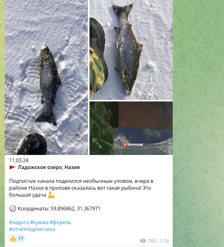 Места последних поимок и новостей о рыбалке в Ленинградской области за прошедшие дни второй недели марта 2024. 1) На Ладоге в Назии рыбаку посчастливилось поймать форель 2) Корюшка на 21 км стабильно клюёт, лёд еще есть! 3) На Казакова без изменений, лещ берет и много. 4) А кто-то уже открыл сезон жидкой воды 5) В Комарово хорошо клюёт плотва, а окунь там затих Для тех, кого более подробно интересуют эти и другие места ловли и где парковать машину, заходите в мой Телеграм канал Рыболовная сводка СПб