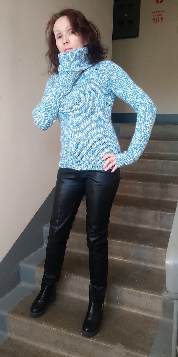 Здравствуйте, сегодня будет маленький обзор, всё-таки выборы, Масленица, нет времени, надо все успеть и еще постоянно бороться с желанием сжечь чучело)) и отвести душу. По быстрому покажу свитер, который я купила за 50 рублей. У меня ещё и платье лежит за 50 рублей, но когда я до него доберусь? Всё времени не хватает(( Я очень люблю свитера и не люблю шарфы, в любой мороз меня греют мои теплые друзья с высокими воротниками)). У меня их целая коллекция, есть покороче и подлиннее, шерстяные и акриловые, толстые на морозы и тонкие демисезонные, но чаще всего, надеваю любимые, тут ничего не поделать. Обыкновенный бело-голубой меланжевый свитер. Я сначала прошерстила в секонде трикотаж и этого свитера не было, видно кто-то утащил в примерочную и уже по пути на кассу увидела его. К тому же сочетание цветов одно из любимых, даже не мерила, хотя бирки я посмотрела. Я люблю такие небольшие тонкие свитерочки как демисезонный вариант, удобно надеть под замшевую куртку или косуху. New Caro -
