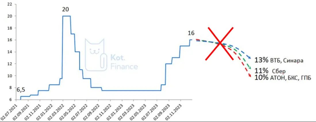 В ЦБ обсуждают более длительный период высоких процентных ставок. Продолжающийся рост доходов граждан 😀😂 так сильно стимулирует избыточный потребительский спрос, что разгоняет инфляцию. Цель ЦБ прежняя – 4% Ссылки по теме: · Аналитики прогнозируют снижение ключевой со второго полугодия · Наша версия, что цифры позволяют уже сейчас снижать ставку · Прогнозы ЦБ меняются вслед за ставкой, а не наоборот: раз, два · Как застраховаться от изменения ключевой ставки? Мы высоко оцениваем профессионализм ЦБ, но удивляемся, как опираясь на одни и те же цифры мы приходим к разным выводам. Хотя раньше приходили к одним. В обзоре ЦБ «О чем говорят тренды» регулятор ссылается не на избыточную печать денег (где двузначные темпы прироста), а инфляцию, которая однозначная (мы ведь все смотрим на цифры Росстат?). У нас варианта два: 1) ЦБ уверенно идет к цифре 4% по инфляции, при ее достижении сразу всем будет хорошо. И ради достижения этого показателя в ход пойдут любые доступные инструменты 2) ЦБ по