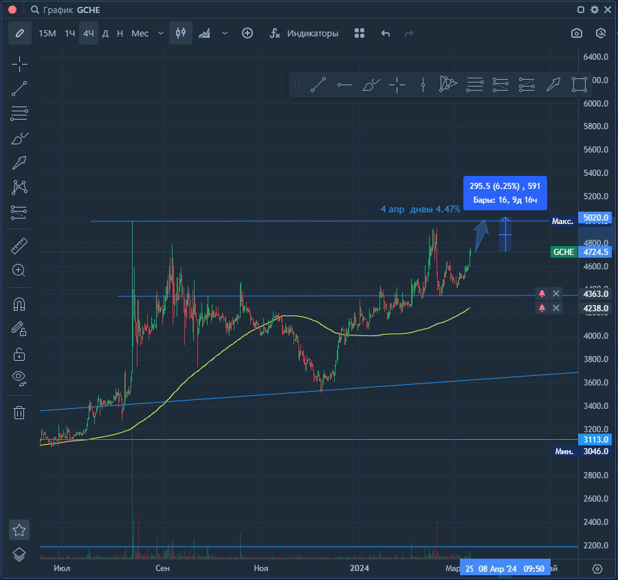 Черкизово, акция стремится к верхней зоне сопротивления. Потенциал с возможным обновлением 5-6%