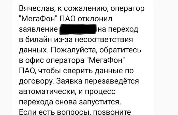 Как перенести номер из Мегафона, когда вам отказывают из-за несоответствия данных