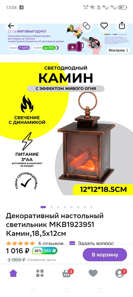 Очень давно хотелось купить светильник камин , хотя бы маленького размера Но такая малютка на валбересе и мегамаркете стоит за 1000 Случайно забрела в фикс-прайс и на полочке стоит мой светильник по смешной цене 349 р Ни секунды не думая , купила себе эту прелесть К сожалению не получается прикрепить видео , но смотрится просто чудесно 😍