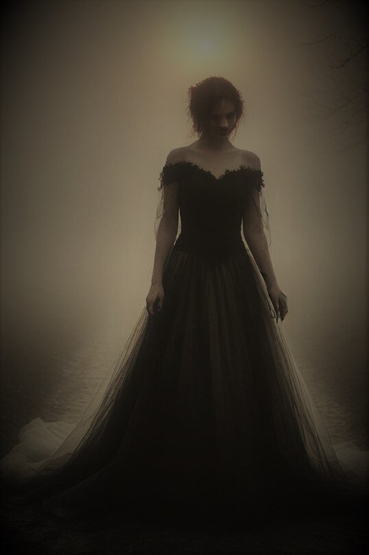 Справили они новоселье с друзьями и поздно вечером легли спать. Никита засопел сразу же, а Ане всё не спалось. Уже за окном погасли фонари, настал предрассветный час, а она всё крутилась с боку на бок, представляя где и что поменяет, какие шторы купит в спальню, на кухню, какую перестановку устроит. И диван, ей очень хотелось, чтобы в их спальне стояла большая кровать. И те тарелочки с мелкими голубыми цветочками, которые она совсем недавно видела в магазине обязательно купит. Аня снова повернулась на другой бок и...увидела возле окна тёмную фигуру. На ней было не то платье, не то балахон, и, Аня могла поклясться, фата.