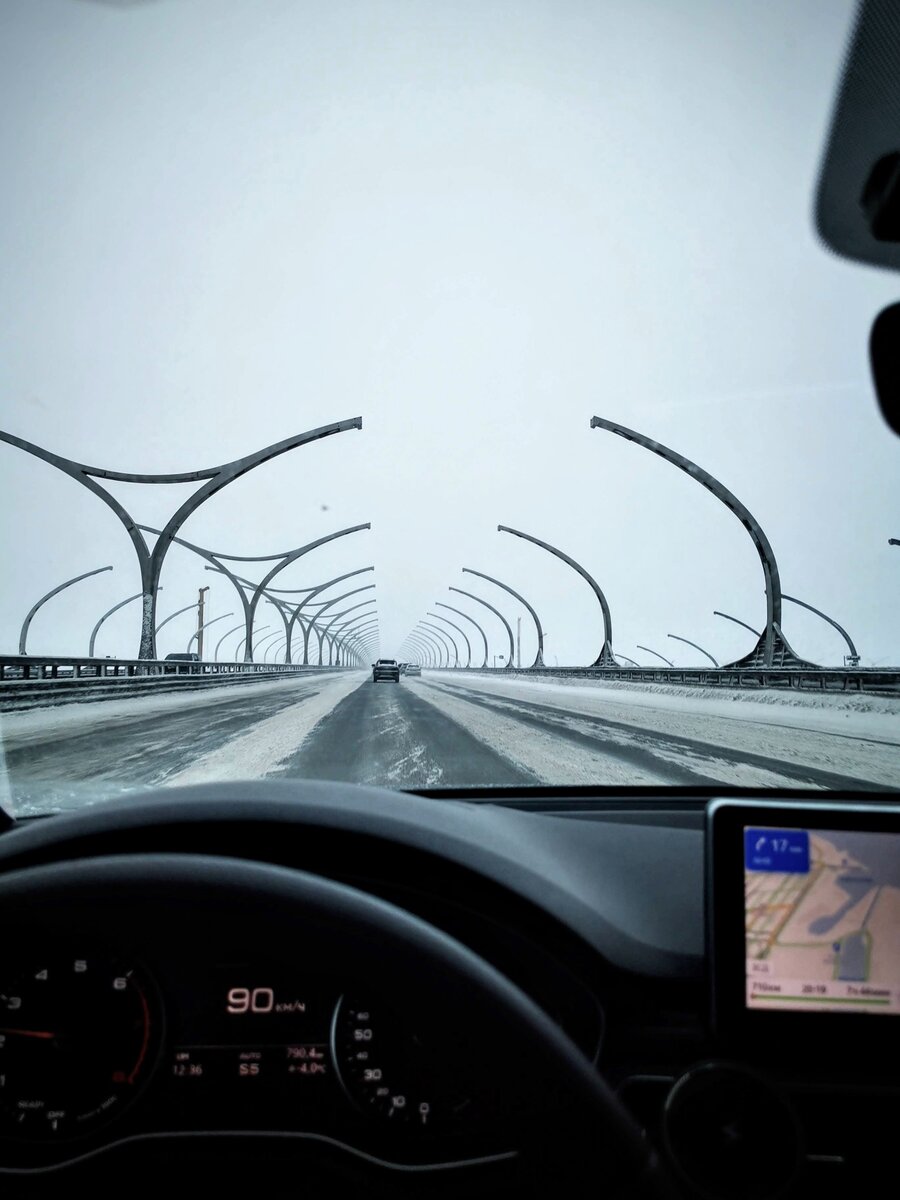 Дорожное полотно на удивление было вполне нормальным, машина и разгонялась и тормозила адекватно, однако видимость упала до пары десятков метров.