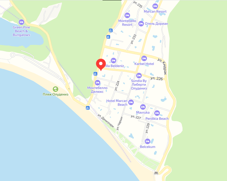Отель находится на 2 линии от моря в центре Олюдениза.