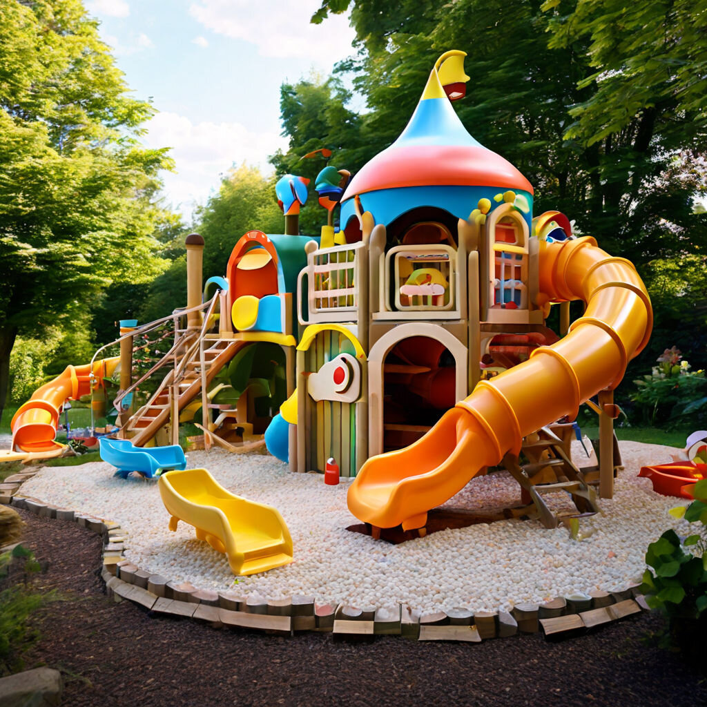Разместите на участке игровые площадки с качелями, каруселями и лестницами для активных игр и физической активности.