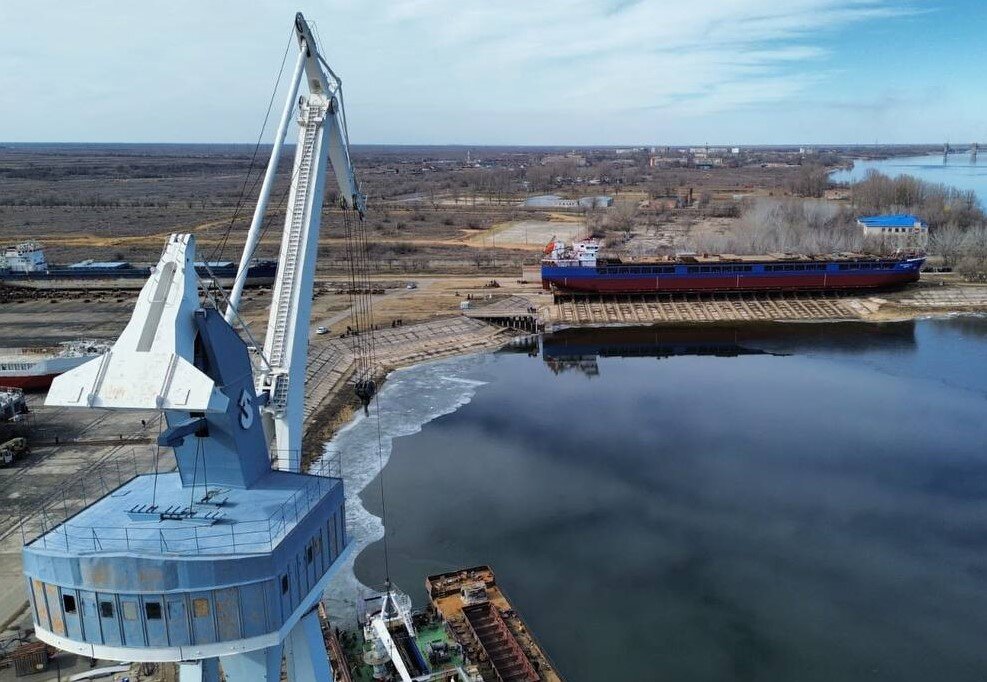 На площадке «Лотос» Южного центра судостроения и судоремонта спустили на воду сухогруз «Каспийский берег»