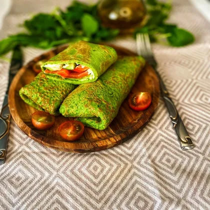 Блины шпинатные. Блины на масленицу. Закуска на праздничный стол
