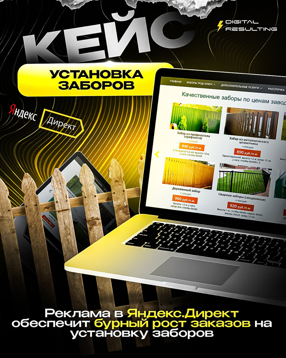Всем привет от Digital-resulting! Доказываем, что "реклама в Яндекс.Директ обеспечит бурный рост заказов на установку заборов" Клиент: Компания, которая оказывает услуги по установке заборов и ограждений. Цель: Увеличить продажи услуг по установке заборов с помощью оптимизации контекстной рекламы в Яндекс.Директе и повышения ее эффективности. Как мы работали: 1. Проанализировали текущую ситуацию: определили слабые места в рекламных кампаниях, выявили неэффективные ключевые слова и объявления. 2. Провели сегментацию целевой аудитории: разделили клиентов на группы в зависимости от их потребностей и предпочтений. 3. Разработали новые рекламные кампании и акции с учетом особенностей каждой группы клиентов. 4. Внедрили новые рекламные кампании, далее отслеживаем их эффективность и оптимизируем при необходимости. Как итог: Благодаря оптимизации контекстной рекламы, количество продаж услуг по установке заборов увеличилось в 2,5 раза. Будем рады новым клиентам из строительной ниши, ведь ВЫ