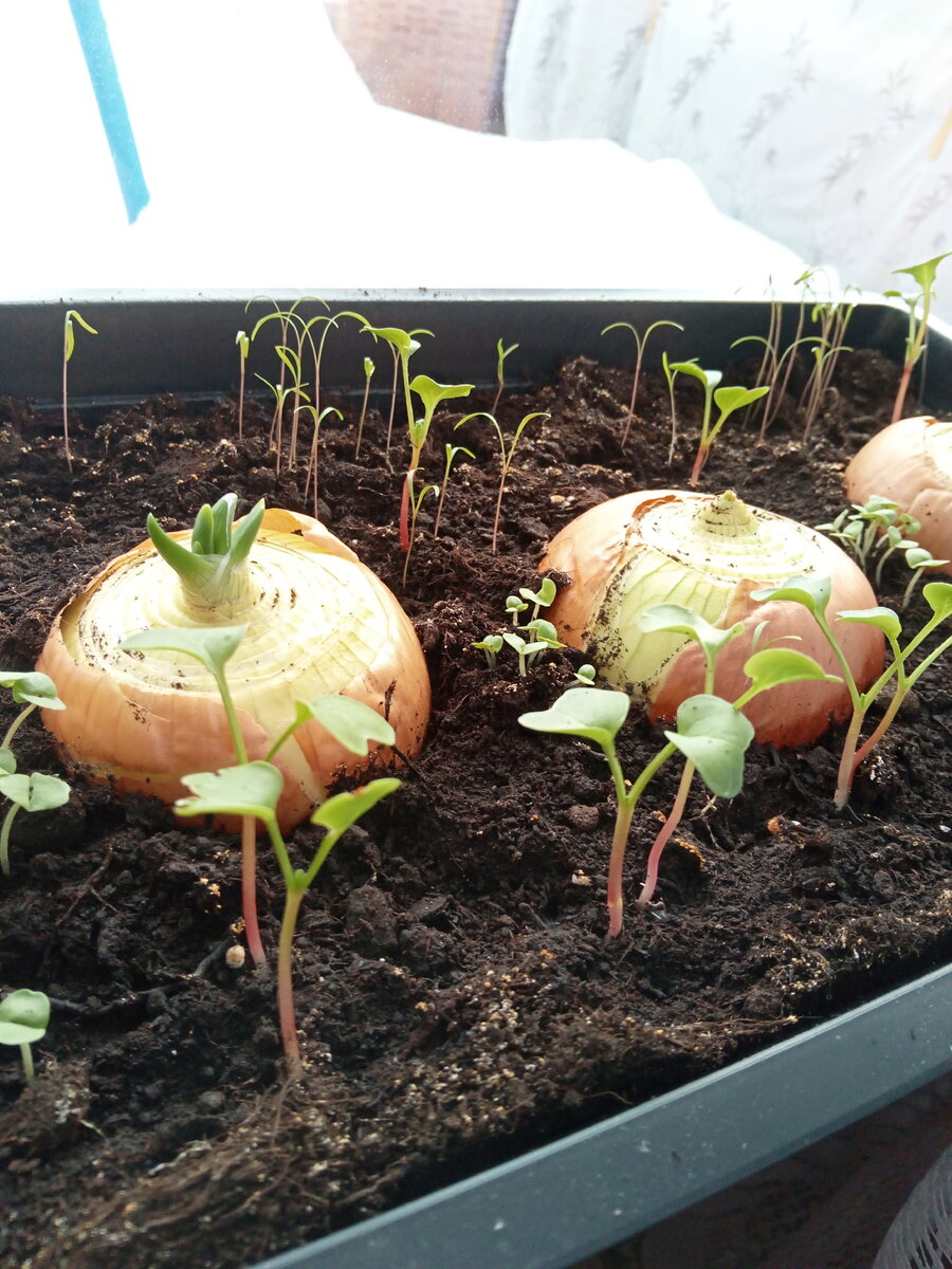 Дачный сезон постепенно приближается и солнце уже днём, несмотря на морозные дни, хорошо подогревает и подтаивает снег, капает талая вода с сосулек. Посаженная мною в начале месяца зелень уже подрастает на подоконнике. С луковиц срезала макушку-так посоветовали в интернете на каком-то сайте, особой разницы как-то не почувствовала. Луковицы сидели в земле долго, целых две недели, прежде чем появились хоть какие-то признаки зелёных пёрышек. Вместе с ними посеяла укроп и базилик. На переднем плане вытянулась в высоту редиска, наверное зря я её решила посадить для комплектности, всё-же день ещё короткий и солнца явно ей не хватает. Подсветка у меня занята другими растениями. Тянется и укроп к солнышку, надеюсь всё-же что вскоре окрепнет. В наших северных широтах срок посадки семян намного позже, чем, к примеру, на Урале. Весна приходит позже примерно на месяц и сажать семена на рассаду приходится также позднее. Опыт прошлых лет показал, что растения томатов, перцев и баклажанов сильно вытя
