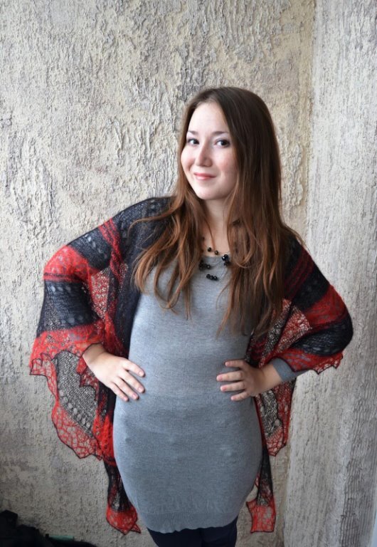- непонятен итоговый размер шали, кто знает насколько хватит остатков, если только их заранее сложить и взвесить.