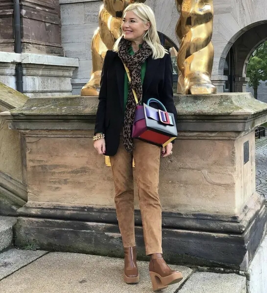 Петра Динерс умеет вдохновить женщину в 50+, создатель модной одежды. Давайте разберём несколько интересных вариантов. Пиджак и замшевые брюки Джемпер отлично сочетается с брюками цвета кэмел, с изумрудной рубашкой. Леопардовый шарфик дополняет образ. С брюками гармонично смотрятся ботильоны на каблуке, а сумка дополняет весь образ. Полупальто Элегантный образ можно подобрать с полупальто. Отлично сочетается с ремнём карамельного цвета. Гармонично смотрятся джинсы и рубашка голубого оттенка. А коричневая сумка с сапогами придают уникальность. Свитер Красный свитер с крупным рисунком, должен быть у всех. Хорошо сочетается с короткими брюками, юбкой или платьем. Лодочки и брюки яркого цвета отлично дополняют образ. Как вам такие образы? Я считаю очень стильно и элегантно. А вы любите полупальто? Подпишись и поставь лайк.