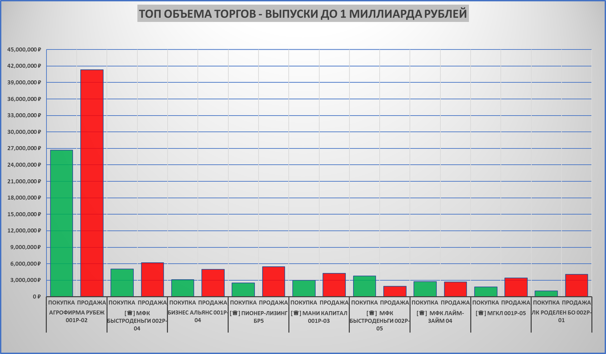 😎 Рад представить цифровые итоги дня вашему вниманию, дорогие читатели. Отмечу сразу забавный момент - хоть и складывается общее ощущение, что рынок распродают, оно может быть несколько обманчиво. Посмотрите при желании на топ падения - объемы торгов там совсем скромные по факту. 1️⃣ АГРОФИРМА РУБЕЖ $RU000A107YT9 - безоговорочный лидер объема среди небольших выпусков. Счастливчики, получившие облигации в портфели, пытаются от них избавиться, а покупатели все еще желают завладеть бумагой на пятилетний срок с приятным купоном без оферт и амортизаций - кажется, проторговка выпуска и выход на справедливую цену может затянуться :) 2️⃣ В лидерах падений сегодня обратил внимание на себя РОДЕЛЕН 002Р-01 $RU000A107076 - какие-никакие объемы подкрепили падение цены. Но я бы подождал доходности 18+ :) 3️⃣ В ХК НОВОТРАНС 001Р-05 $RU000A107W06 достаточно крупный единоразовый выход двумя сделками по почти 25 миллионов - в топ 7 продаж эмитент отметился. Однако, с учетом общего объема выпуска, ч