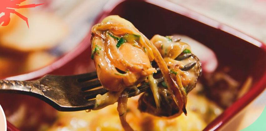 Ингредиенты: Для начала отвариваем мидии в подсоленной воде. Затем сливаем воду и даем мидиям остыть. Лук очищаем от шелухи, нарезаем. Берем сковороду, разогреваем масло и обжариваем лук до золотистого цвета. Добавляем в сковороду сахар и ложку сливочного масла. Готовим лук на несильном огне под крышкой, пока он не приобретёт карамельно-коричневый цвет и не станет мягким. Отключаем огонь, выкладываем к луку мидии, добавляем майонез и мелко нарезанную зелень, солим, перчим и аккуратно перемешиваем. Раскладываем мидии с луком по небольшим формочкам для запекания. Засыпаем формочки толстым слоем крупно натёртого сыра. Запекаем в разогретой до 190° духовке, пока сыр не расплавится, и сразу же подаем. Источник: https://wildcrab.ru/news?id=2351