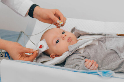 Все было хорошо: ели - спали, ели - спали. Росли. Если не придираться, то и заметить в ребенке что -то не ладное было трудно. Коварная болезнь протекает молча и бессимптомно. Часто родители слишком поздно замечают проблему. Поэтому я тут и пишу эту статью. Надеюсь, мой опыт будет полезен ! Примерно в 4 месяца от роду в сердце закралась тревога. Тогда я впервые вспомнила сурдолога из роддома: “Езжайте спокойно домой и повторите исследование через пару месяцев”. Что же смущало: “ Смелая девчонка” - говорили окружающие. “Странно” - переживала я. “ Ты себя накручиваешь” - успокаивал муж. С верного пути сбивало то, что она все - таки реагировала на звуки. Поворачивала голову в сторону шума. Не всегда, но давала реакции на погремушки. Мы не торопясь, без паники, но уже с тревогой, начали действовать. В 6 месяцев мы оказались на приеме у сурдолога вновь. Нам сделали тимпанометрию и аудиометрию. Оба исследования показали, что есть отклонения от нормы — нарушение проводимости звуковых колебани