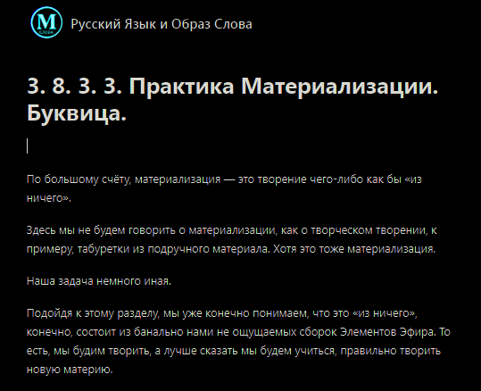 Начиная с первой буквы у вас должен мгновенно пойти первый необходимый образ с последующими образами от букв слова. А всё должно заканчиваться на последней букве, где вы должны получить полноценный образ, который бы соответствовал необходимой Информации как надобности, который должен быть размерен соответствующей Мерой. И который вы материализуете через произнесение необходимых звуков СЛОВА.