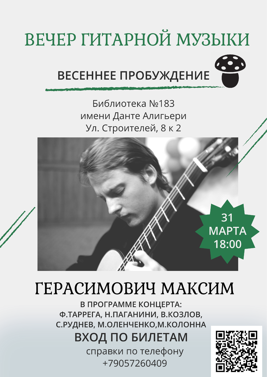 Друзья, решил стряхнуть пыль со струн и сыграть для вас вживую. Концерт в Москве Программу буду играть разнообразную. Романтизм, фолк, фингерстайл, латиноамериканская музыка. По секрету говорю, что одна из пьес на концерте - премьера в СНГ Подробная программа по ссылке ниже или по qr коду на афише. https://myselfguitar.timepad.ru/event/2814553/ Буду рад всех видеть #гитара #москва #афиша