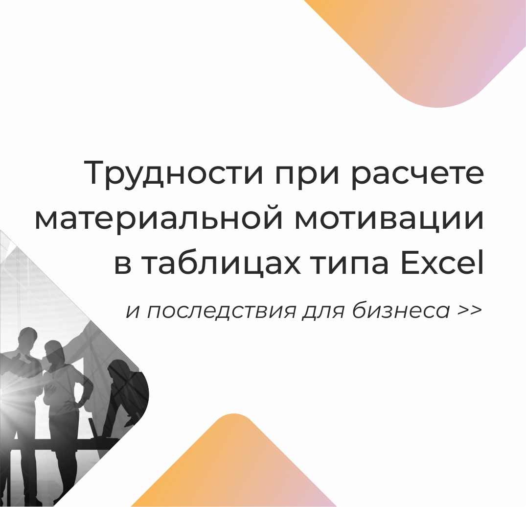 Работу с расчетом материальной мотивации компании в большинстве случаев начинают вести в электронных таблицах (google или excel). И в начальный период такие таблицы являются неотъемлемыми помощниками. А потом, когда сформировалась привычка работать с ними, мы перестаем замечать, сколько времени на работу с ними мы затрачиваем, как эти инструменты начинают обрастать и усложняться визуально. И в итоге это ведет к большим временным и материальным затратам. Рассмотрим некоторые трудности при использовании электронных таблиц в материальной мотивации. Трудности для бизнеса -Подготовка таблиц(ы) для текущего месяца: на каждый новый период создается новая версия таблицы, в нее кто-то обязательно вносит коррективы, которые невозможно отследить. Нам на моделирование давали одинаковые таблицы разных периодов и они отличались формулами расчета и на выяснение какая корректная уходило время. -Трудоемкость сбора данных: данные собираются вручную, а если показателей много то возможность не совершить о