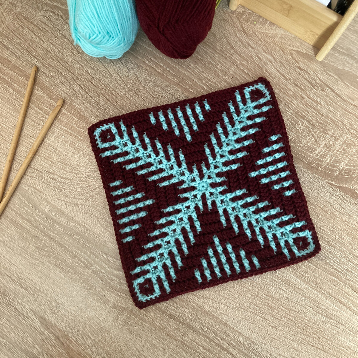 Мотив «Преображение» для вязания мозаики крючком, образец и две схемы