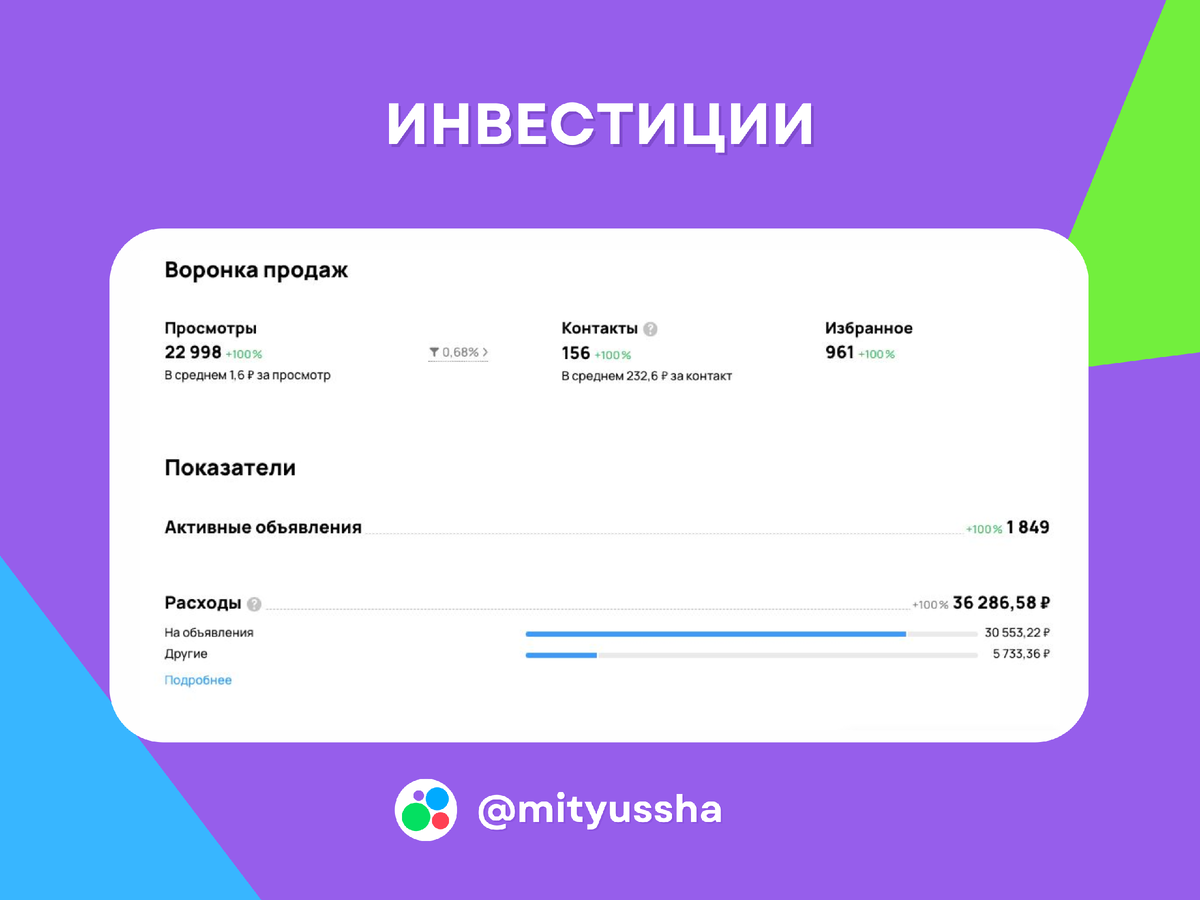 Конкуренция за внимание аудитории становится всё более острой, нестандартные подходы и креативность выходят на первый план. Этот пост будет о том, как мы применили такой подход в нише инвестиций на Авито. О рынке инвестиций на Авито Авито, будучи одной из крупнейших торговых площадок в России, предоставляет уникальные возможности для привлечения лидов к инвестиционным проектам. Как видно из данных, сегмент инвестиций на Авито демонстрирует впечатляющий потенциал для развития. Предыстория С заказчиком мы сотрудничаем больше 6 месяцев, постоянно анализируем эффективность объявлений, периодически меняем креативы и тестируем различные подходы. В нише инвестиций на протяжении года мы тестировали различные стратегии и подходы, что позволило нам разработать эффективную связку, которая обеспечивает высокую конверсию и стабильные лиды. Стратегия и результат На старте проекта мы запланировали создать 5 разных проектов для привлечения инвестиций. Принимая во внимание частые блокировки со стороны