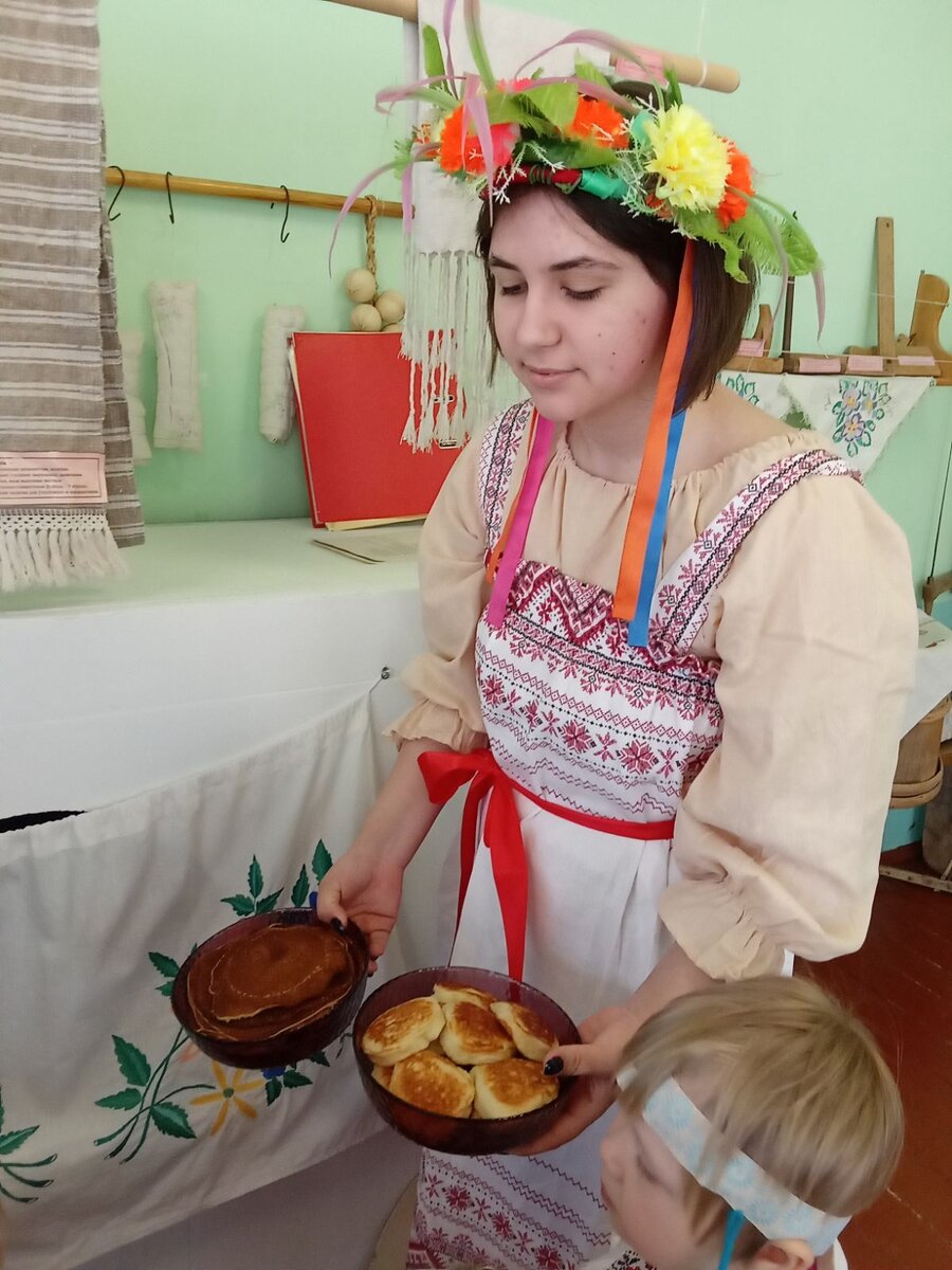 В нашем детском саду становится традиционным празднование народных праздников. Широкий четверг или Разгуляй — ребята встретили весело, интересно и вкусно. Ведь и в старину четвертый день масленицы, который припадал на четверг, - это время, когда празднование входит в свою активную фазу. В древности считалось, что именно в этот день зима начинает окончательно уступать место весне. Люди старались провести его весело, чтобы привлечь благоприятные изменения в свою жизнь. Важным моментом начала празднования был приход в гости Масленицы. Вместе с ней были организованы хороводные игры («Солнышко», «Отгадай, чей голосок?»), подвижные народные игры («Ручеек», «Коники» и другие»). Кульминацией празднования стало угощение Масленицей ребят румяными блинами. Особую атмосферу во всем праздновании придало и то, что все действия проходили в нашем этническом музее. Ребята, разместились в красном углу, пили чай с самовара и угощались вкусными блинами (на что дети не раз обратили внимание: «У Масленицы в