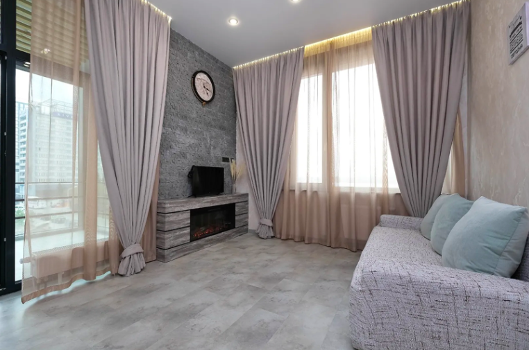 По информации, указанной в объявлении, в квартире кухня совмещена с гостиной, есть отдельная спальная комната. Апартаменты оснащены дорогой техникой и мебелью. Здесь есть два смарт-телевизора, гостям с детьми предоставляется кровать-манеж.