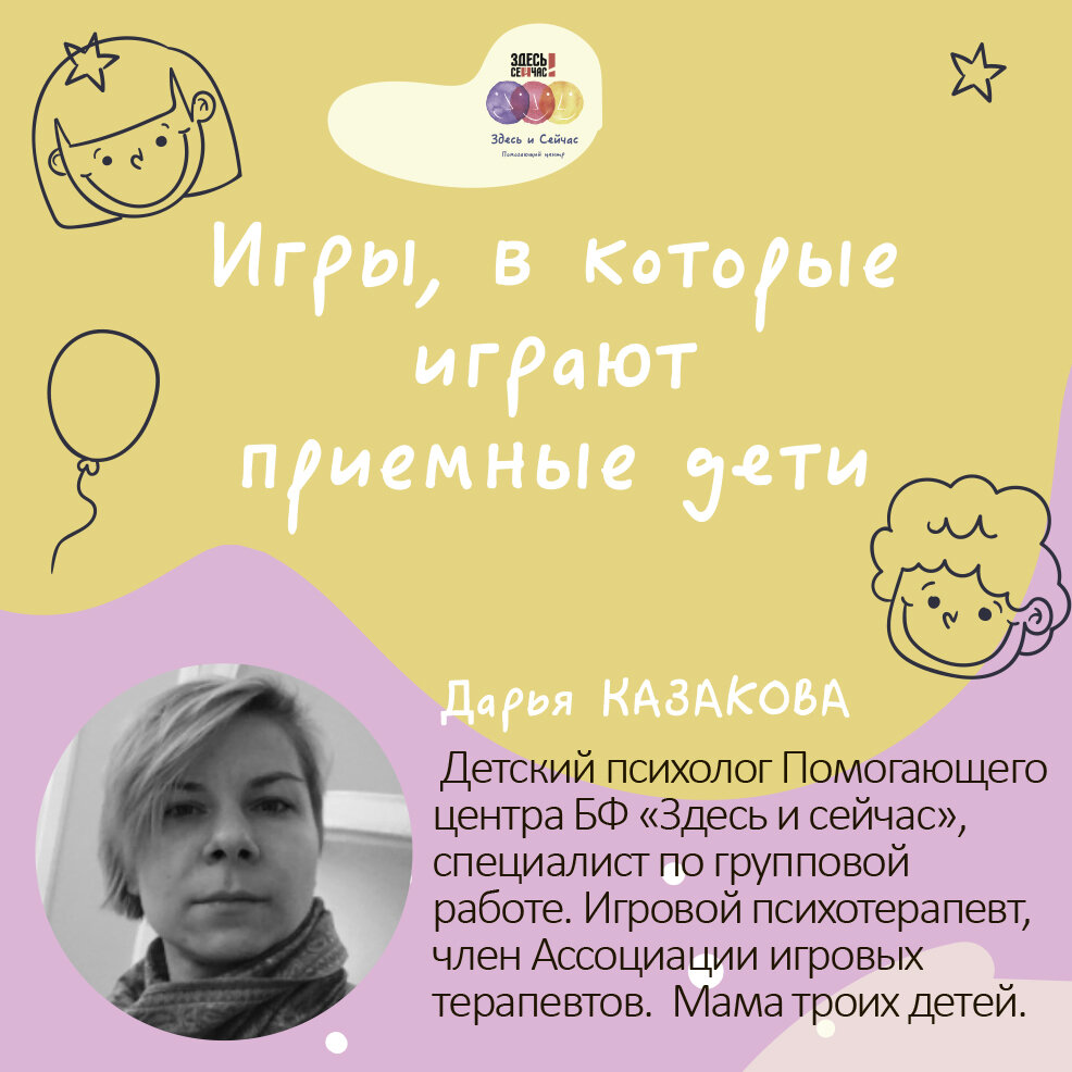 О том в какие игры чаще всего и почему играют приемные дети с нами поделилась Дарья КАЗАКОВА, детский психолог Помогающего центра, игровой терапевт, член Ассоциации игровых терапевтов, мама троих детей.